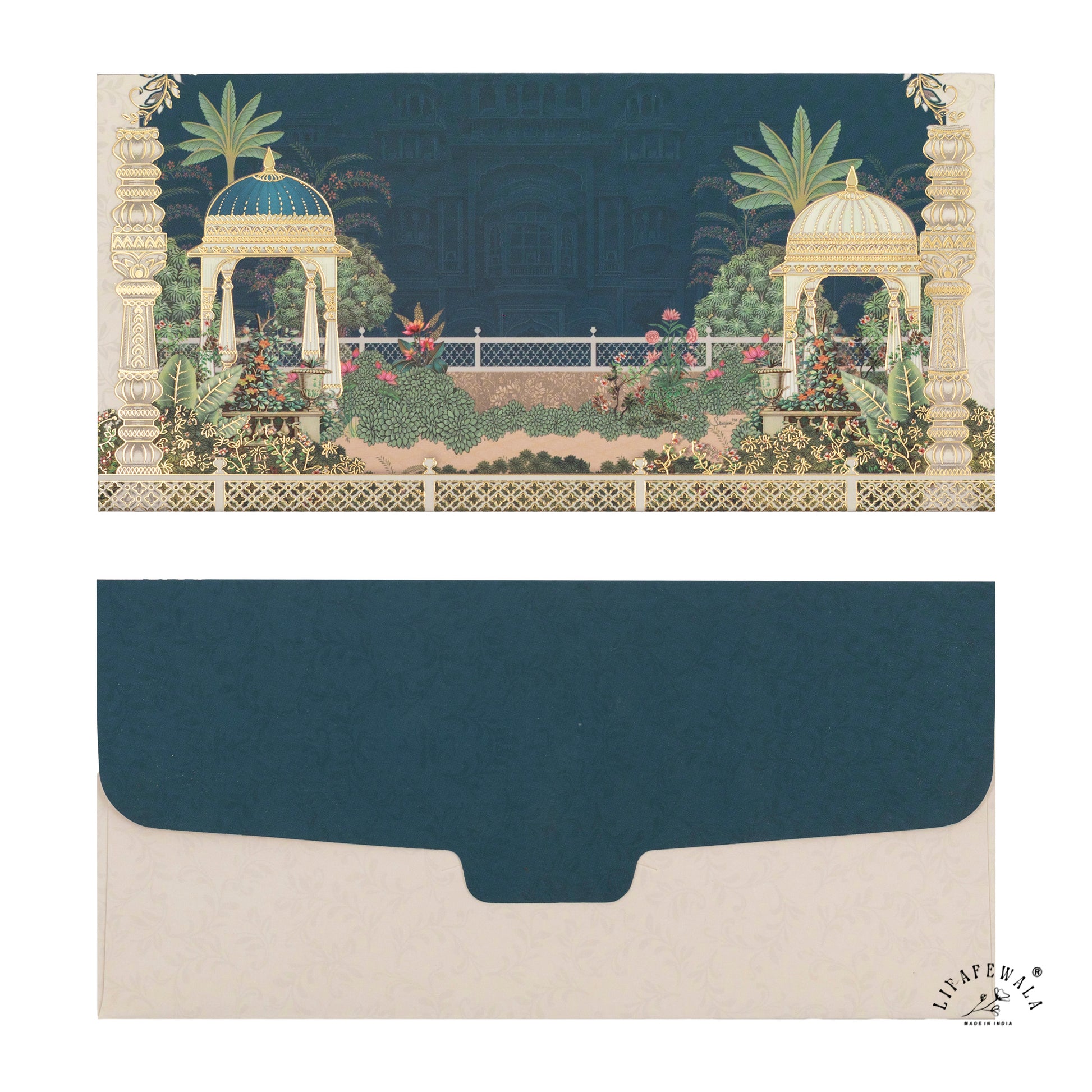 Add royal elegance to your gifting with Lifafewala Beautiful Peacock & Orchard Design Shagun Envelopes. Featuring intricate peacock and orchard artwork enhanced with rich gold foil detailing on a premium velvet-feel finish, these envelopes make every shagun truly special and memorable.