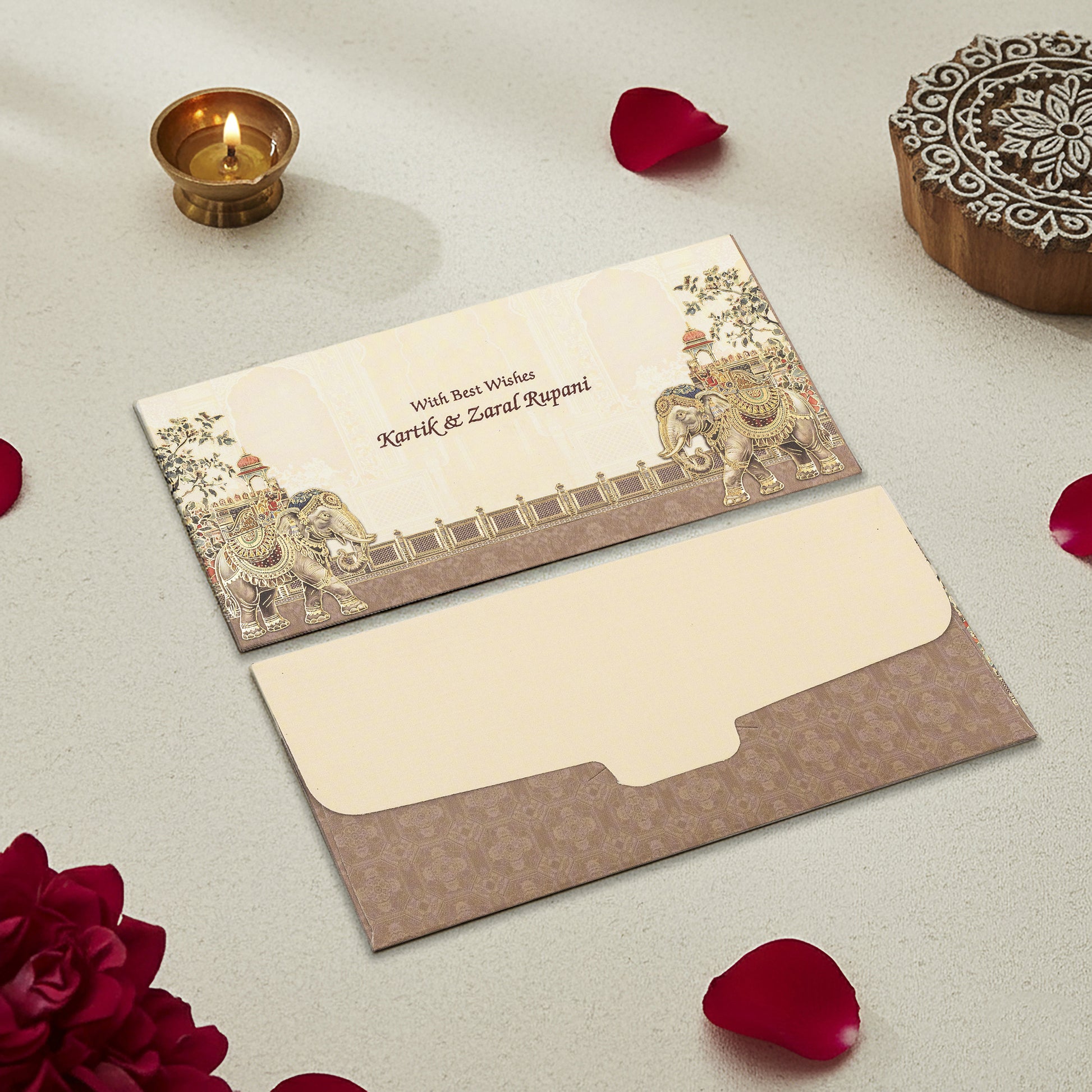 Design: Royal Elephant motif with premium gold foil highlights