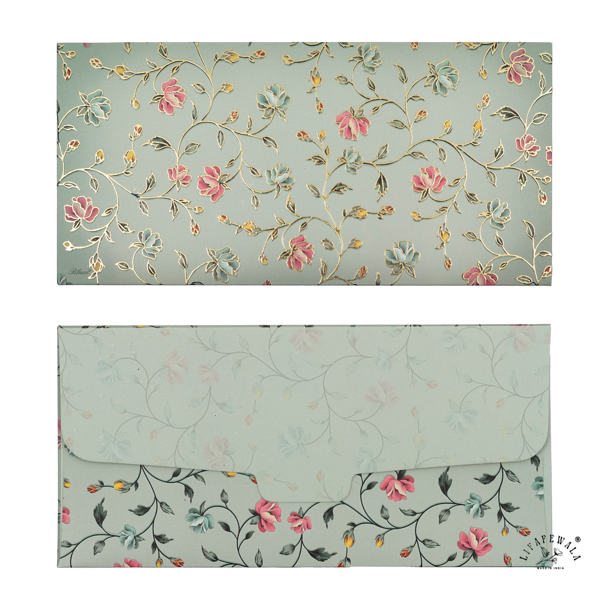 Premium Small Flower Shagun Envelopes – Matte Finish Embossed Gold Foil Wedding Gift Covers | Lifafewala (Pack of 20–200)