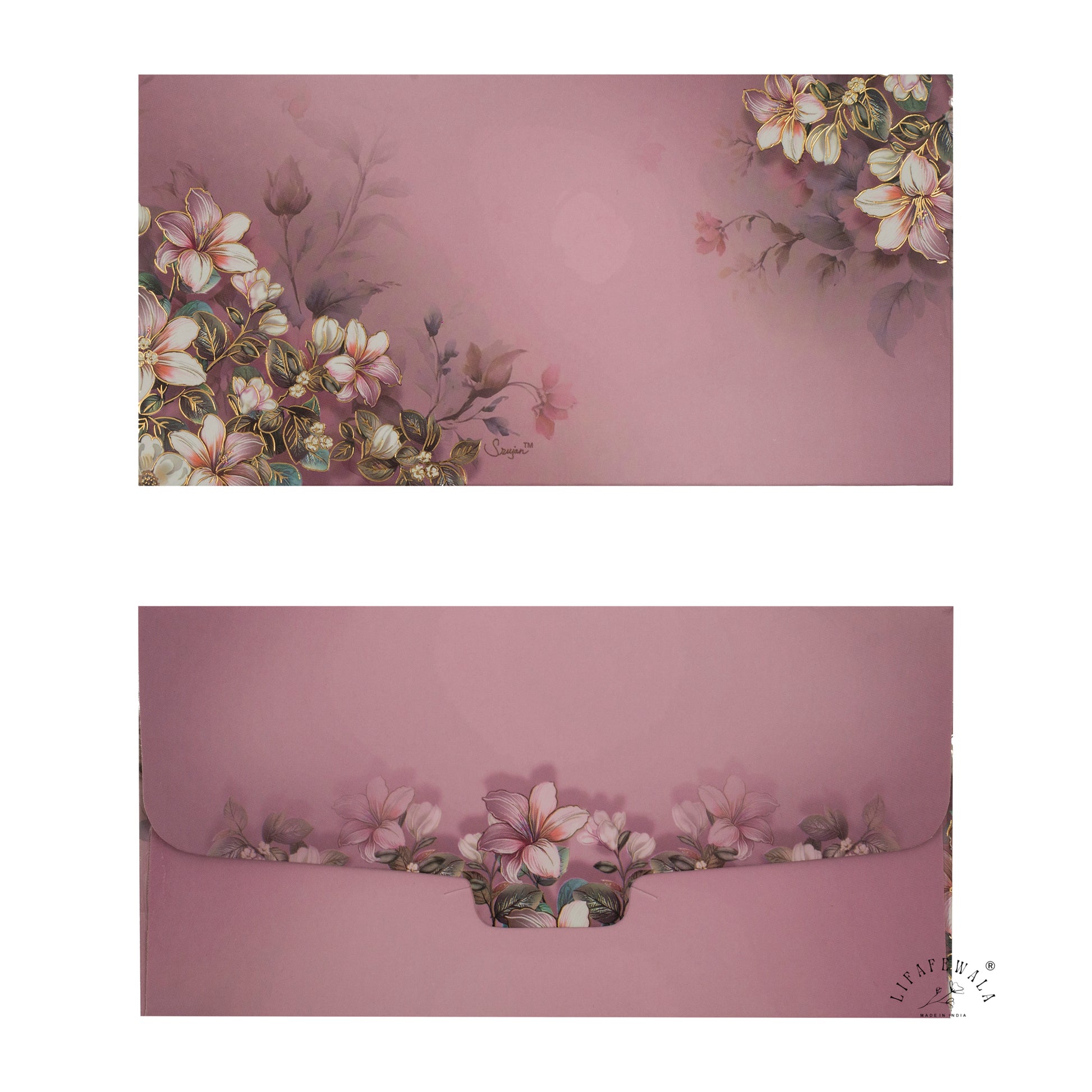Purple Floral Golden Foil Shagun Envelopes | LIFAFEWALA (Pack of 20–200, Matte Finish Money Gift Covers)